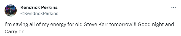 名嘴帕金斯发推写道:我要把所有的精力都省下来,留着在明天批斗老科尔,晚安。