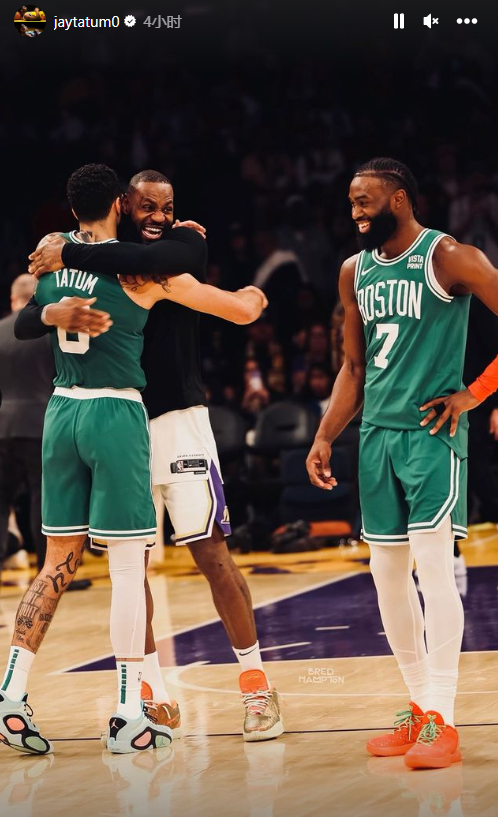 值得一提的是,今天凯尔特人球星塔图姆晒出他在圣诞大战赛后紧紧拥抱詹姆斯的合影,布朗也咧嘴大笑;湖人圣诞大战不敌绿军,詹姆斯14投5中拿到16分9篮板8助攻。