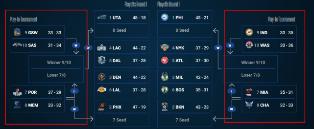 在北京时间5月7日的比赛开始前,西部排名第7-10名的球队依次是:开拓者、灰熊、勇士、马刺,东部排名第7-10名的球队依次是:热火、黄蜂、步行者、奇才。如果附加赛今天开战,以上8支球队就是要参加附加赛的球队。