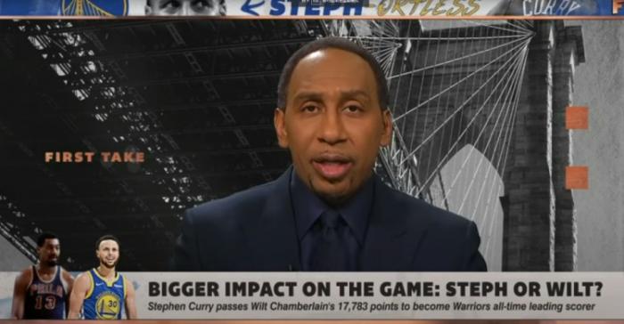 据数据统计,张伯伦在勇士用了429场比赛得到了17783分,而库里则用了745场比赛(17818分)完成了超越。但是名嘴斯蒂芬·A·史密斯仍认为库里更加伟大“库里比张伯伦更有影响力,张伯伦有超凡的统治力让NBA改变了5次规则,但库里不同,库里是上帝创造过的最伟大射手,自从篮球被发明后,没有一位球员的投射比库里好。有的球员擅长接球投篮,有的擅长干拔,有的擅长面对防守人投篮,但是没有一位能像库里那样全面兼顾。库里没有死角,三分线外一米、两米甚至五米都可以投篮。”