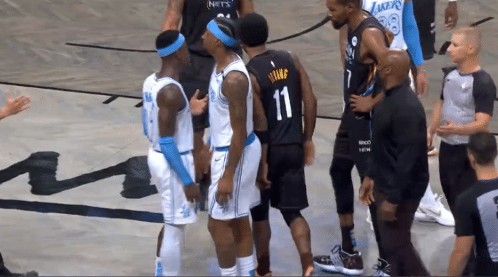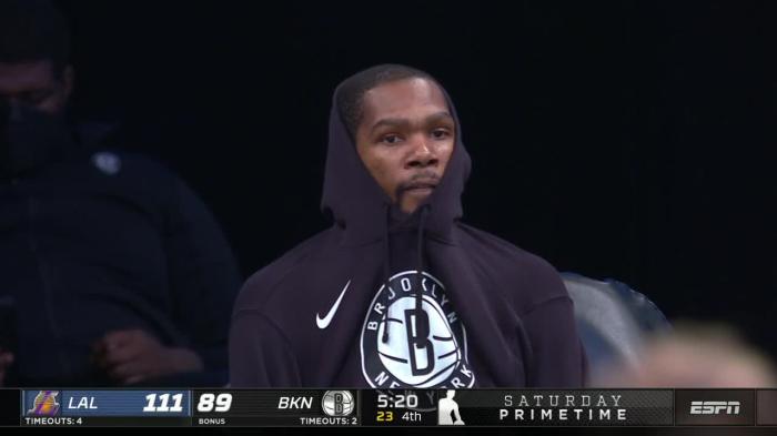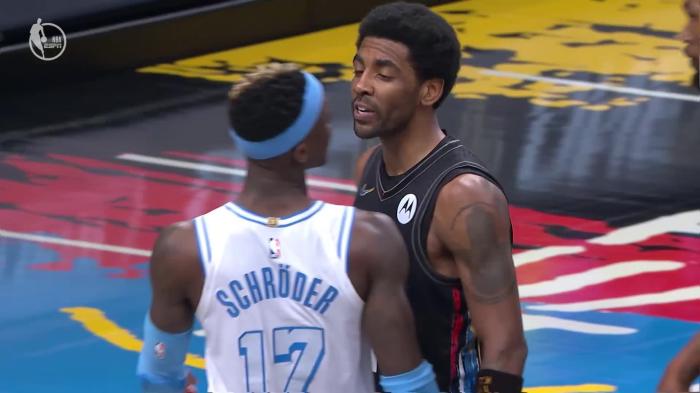 24直播网讯北京时间4月11人,湖人客场25分大胜篮网,欧文和施罗德互喷垃圾话,都连吃两T被驱逐离场,两人都是生涯首次被驱逐离场;如此突发事件瞬间冲上热搜引热议,裁判如此吹罚也遭质疑,篮网巨星杜兰特毫不客气地直言:裁判控制了比赛。
