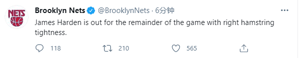 24直播网4月1日讯 篮网和火箭比赛中,哈登因伤退赛,伤情初步确诊为右侧腿筋紧张提前退出本场比赛;篮网官方已经宣布这一坏消息,篮网官宣哈登伤退。