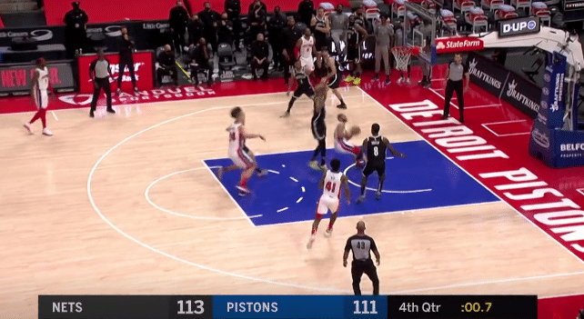 投篮一直都很稳定的乔-哈里斯被犯规,他居然在关键时刻两罚中一,这样分差来到3分,但球权是活塞,时间只剩下5.3秒。