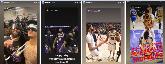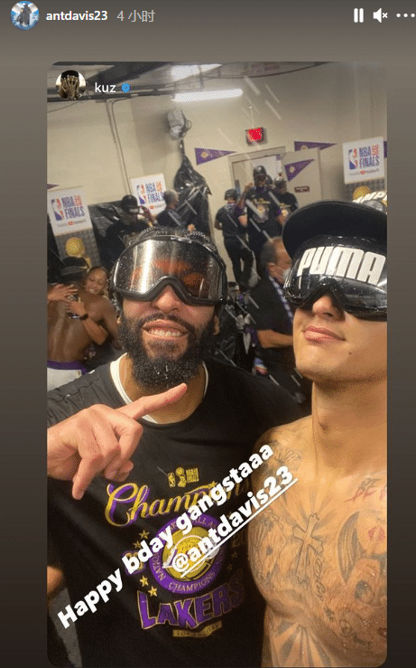 湖人球员库兹马、杜德利、大莫里斯以及施罗德都晒出和浓眉合影的画面,更新社交媒体祝贺浓眉28岁生日快乐,浓眉一一转发好兄弟的祝福。