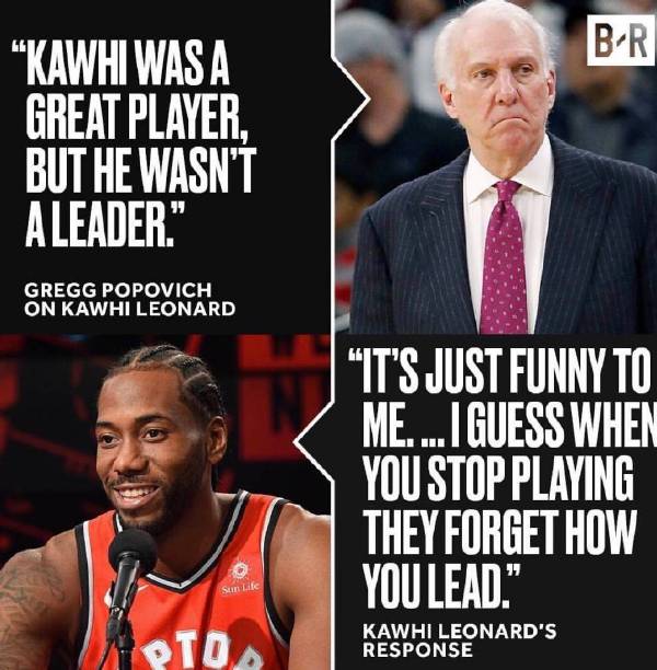 18年夏天,伦纳德和波波维奇以及马刺分手,转会到猛龙,从此再见时皆是各为其主,为了场胜利拼得你死我活。