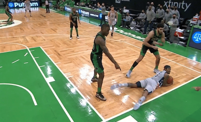 奇才和绿军比赛最后2分钟仅有一次漏判,末节46.9秒,凯尔特人球员哈维特-格林在没有防守任何球员的情况下,站在禁区超过3秒,应该吹罚格林防守违例;在这一个回合中,比尔持球突破打进关键两分。