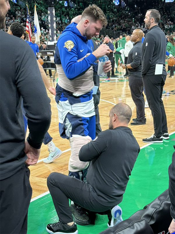 东契奇遭遇右膝扭伤、左脚踝酸痛和胸部挫伤仍继续带伤坚持比赛,卢卡早早开启得分模式,多次军训塔图姆以及造杀伤罚球得分,第一节上场9分40秒,7投5中独砍13分2篮板1助攻,期间东契奇的手被抓破了,鲜血染红战袍;塔图姆首节4投0中一分未得。