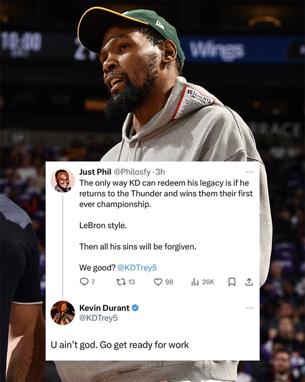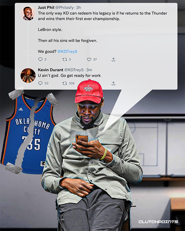 对此,杜兰特直接用大号回怼:你又不是神,赶紧去上班吧。