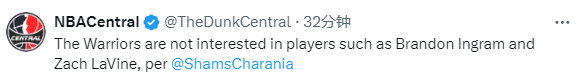 勇士队控制了除一个未来首轮选秀权(2030年向华盛顿交出的前20保护选秀权)之外的所有选秀权,加上波齐姆斯基、特雷西·杰克逊-戴维斯、穆迪和乔纳森·库明加。他们可以一直到二月的交易截止日期都成为积极的买家。他们对扎克-拉文或布兰登-英格拉姆的市场没有表现出兴趣。