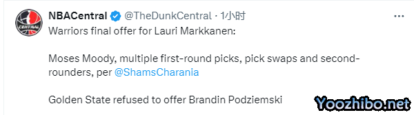 众所周知,马尔卡宁是勇士队想要引援的目标,可勇士与爵士之间的交易谈判失败,据名记shams报道,勇士对马尔卡宁的最终报价为穆迪+多个首轮签+多个次轮签+选秀权互换权,同时勇士拒绝在交易中付出波杰姆斯基。