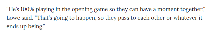 24直播网讯 北京时间9月19日/讯名记Zach Lowe报道,詹姆斯父子将在新赛季揭幕战迎来NBA首秀,Lowe在节目中表示:布朗尼100%会出战新赛季揭幕战,这样他和詹姆斯就会有一个特别的瞬间。这肯定会发生的,他们会互相传球或者干些其他的。