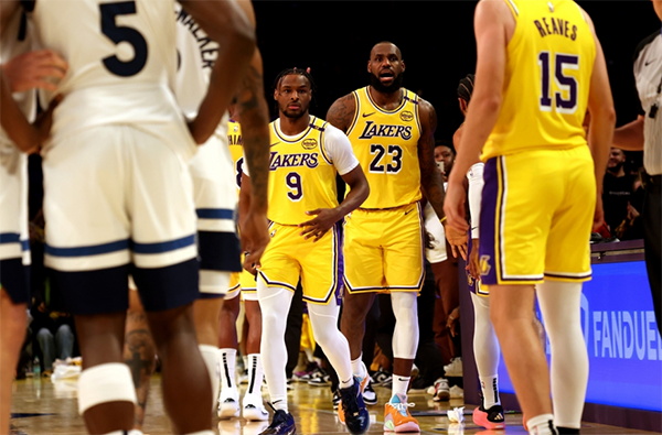 五连客之旅的第二战,第一节湖人23-42落后19分,之后苦苦追赶却无济于事,一直被骑士压制,末节詹姆斯和浓眉都提起认输,比赛早早沦为垃圾时间,骑士主场的球迷集体高呼“我们想要布朗尼”,第四节5分16秒布朗尼终于登场,2分06秒布朗尼中投打进NBA生涯第一球,此时镜头拍到,浓眉和拉塞尔交流,詹姆斯一脸严肃。