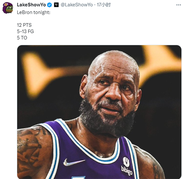 24直播网讯湖人在主场不敌雷霆,输掉杯赛生死战后正式无缘八强且被淘汰出局,即将40岁的詹姆斯又打出拉胯一战,全场全场13投5中、三分4中0拿到12分8篮板6助攻5失误,正负值-12全场最差。