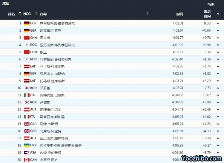 最终排名钢架雪车项目在国外已有100多年历史,但中国2015年才组建第一支专业运动队。2018年平昌冬奥会,耿文强代表中国钢架雪车队第一次踏上冬奥会的赛场,最终取得了第13名的成绩。