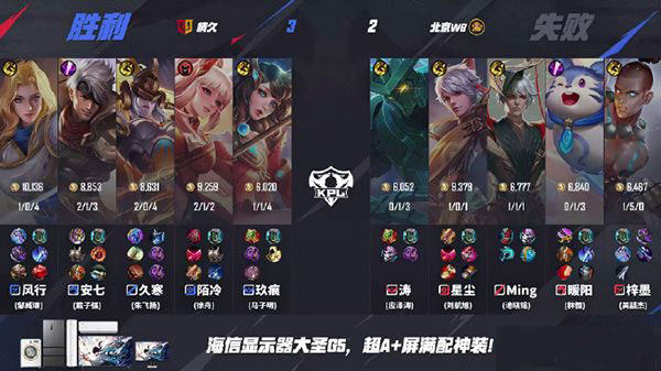 第五局,情久开局逐步取得优势,利用强大的前期控场与连杀成功压制WB,虽然WB多次反击,但未能扭转局面。最终,情久凭借稳扎稳打和阵容优势,轻松拿下胜利,完成反超。本局MVP为情久安七 (戴子强)夏侯惇!