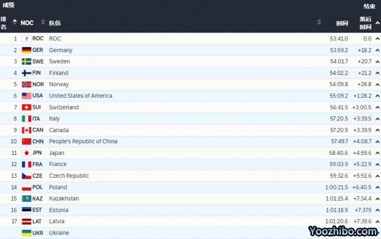 最终,俄奥队夺金,德国队获得银牌,瑞典队获得铜牌,中国队则创造了越野滑雪接力项目冬奥历史最好战绩(此前为12名)!