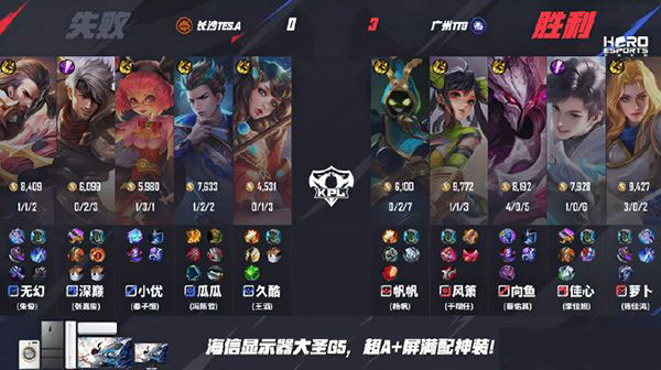 第三局,TTG拿下多次击杀,掌握大局节奏,滔搏几乎没有反抗之力。TTG依靠巨大人头和经济优势拿下本场比赛!本局MVP为广州TTG向鱼- (蔡佑其)干将莫邪!