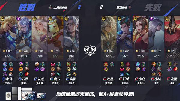 第五局,DYG早期通过火舞和镜的表现取得领先,但EDGM凭借关键的狂铁进场与鲁班抢龙扭转战局,最终以团灭优势夺回胜利。本局MVP为上海EDGM凌云 (陈鸿铭)鲁班七号!