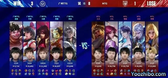 JRS直播网讯 北京时间03月16日,在KPL第二场比赛中,广州TTG以3-1的比分击败了MTG,拿下了第二轮常规赛A组的第二个积分。