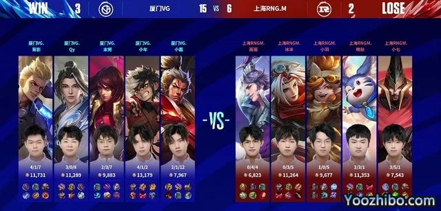 恭喜厦门VG以3-2的战绩惊险击败上海RNG.M赢下了比赛胜利,终结了自身五连败,拿到了KPL春季赛首胜。