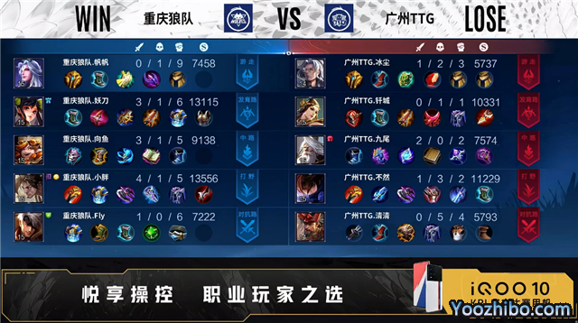 重庆狼队选用:老夫子、镜、王昭君、李元芳、大乔