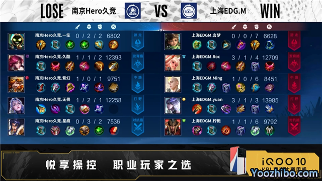 JRS直播网讯:北京时间8月11日2022年KPL夏季赛常规赛第三轮第三周第二日第一场,由南京Hero久竞对阵上海EDG.M,以下是本场比赛快讯: