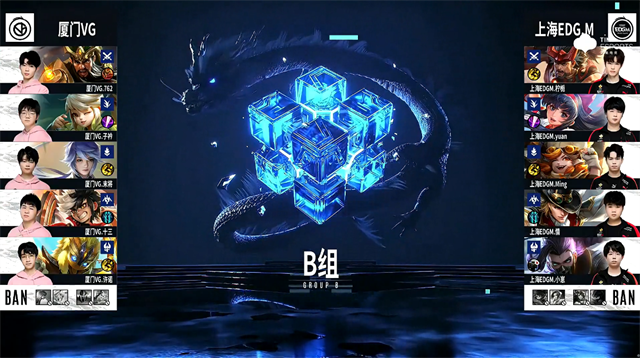 双方常规开局。1分09秒上海EDG.M拿下中路河道之灵。2分20秒上海EDG.M拿下暴君4分18秒暴君处团战上海EDG.M打出0换2。5分39秒发育路团战厦门VG打出1换2。5分55秒上海EDG.M野区击杀娜可露露。6分57秒中路上河道团战厦门VG打出0换2。7分24秒厦门VG摧毁敌方中路外、二塔。7分37秒厦门VG拿下暴君。8分28秒上海EDG.M拿下主宰。9分35秒主宰处团战上海EDG.M打出0换2。9分59秒厦门VG野区击杀猪八戒。10分24秒上海EDG.M拿下暗影主宰,厦门VG拿下暗影暴君。11分20秒暴君处团战上海EDG.M打出0换3。12分14秒野区团战厦门VG野区打出0换4,娜可露露拿到四连超凡。12分54秒厦门VG反推敌方水晶拿下比赛。