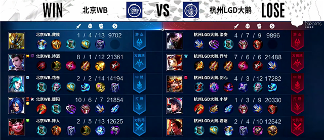 JRS直播网讯 10月15日2021年KPL秋季赛常规赛第四周第三日第一场,由杭州LGD大鹅对阵北京WB,以下是本场比赛快讯。