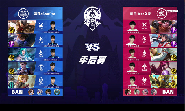 JRS直播网讯 6月5日2021KPL春季赛季后赛胜者组第一轮,由武汉eStarPro对阵南京Hero久竞,以下是本场比赛快讯。