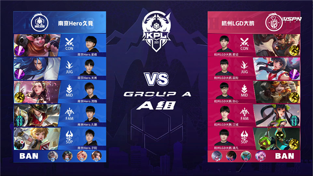 JRS直播网讯 4月25日2021KPL春季赛常规赛第五周第五日第一场比赛,由A组的南京Hero久竞对阵杭州LGD大鹅,以下是本场比赛快讯。