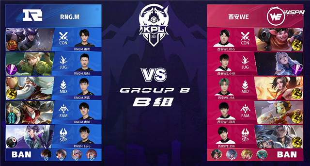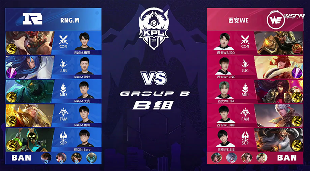 JRS直播网讯 4月24日2021KPL春季赛常规赛第五周第四日第三场比赛,由B组的西安WE对阵RNG.M,以下是本场比赛快讯。