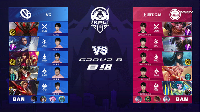 JRS直播网讯 4月23日2021KPL春季赛常规赛第五周第三日第二场比赛,由B组的VG对阵上海EDG.M,以下是本场比赛快讯。