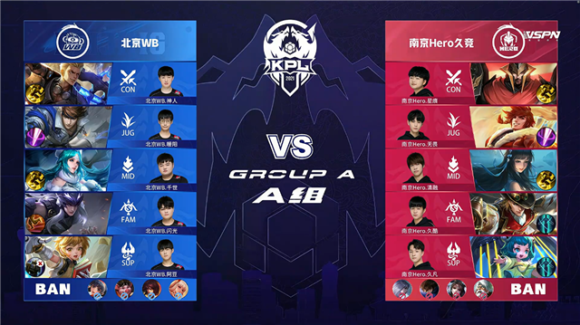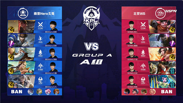 JRS直播网讯 4月23日2021KPL春季赛常规赛第五周第三日第一场比赛,由A组的南京Hero久竞对阵北京WB,以下是本场比赛快讯。