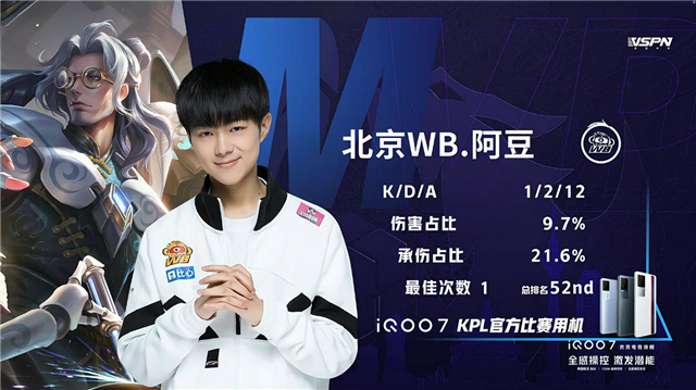 双方平稳开局,2分07秒暴君处团战南京Hero击杀盾山拿到一血。2分21秒北京WB公孙离在暴君处单杀大乔。3分07秒南京Hero拿下暴君。3分58秒下路南京Hero击杀公孙离。4分11秒北京WB拿下主宰。6分21秒南京Hero摧毁敌方下路外塔。7分26秒北京WB拿下暴君。8分25秒南京Hero拿下主宰。9分05秒北京WB裴擒虎野区单杀橘右京。9分24秒北京WB摧毁敌方中路外塔。10分17秒北京WB拿下暗影暴君,团战双方1换1。11分11秒上路团战北京WB打出2换5,裴擒虎打出三连决胜。12分整北京WB摧毁敌方水晶拿下比赛。