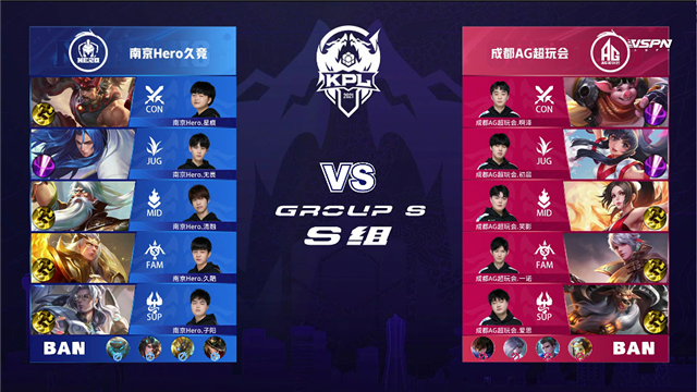 JRS直播网讯 4月18日2021KPL春季赛常规赛第四周第五日第一场比赛,由S组的南京Hero久竞对阵成都AG超玩会,以下是本场比赛快讯。