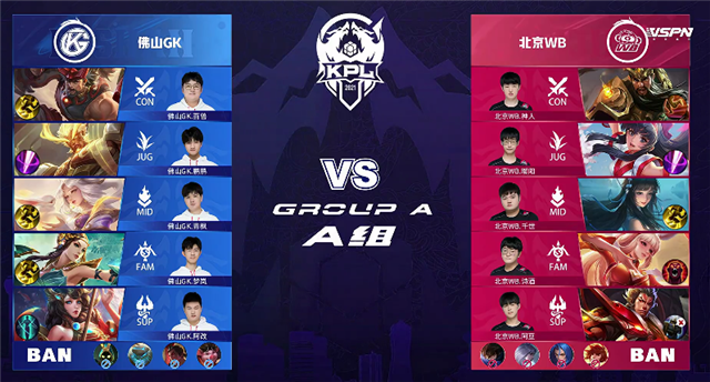 JRS直播网讯 4月1日2021KPL春季赛常规赛第二周第二日第一场比赛,由A组的佛山GK对阵北京WB,以下是本场比赛快讯。