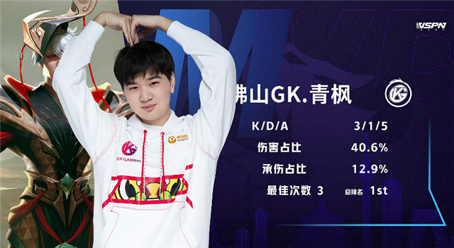 双方平稳开局。2分14秒佛山GK拿下暴君,北京WB拿下主宰。4分20秒中路团战,干将莫邪拿下一血。6分10秒干将莫邪被击杀。6分24秒北京WB强攻上路一塔,双方打出1换1。7分45秒上野区团战,双方打出1换1。7分52秒老夫子推掉下路一塔。9分15秒下野区团战双方打出1换1。10分16秒北京WB下路一塔被破。11分24秒佛山GK拿下暴君。12分22秒佛山GK推掉上路一塔。12分50秒上河道团战,佛山GK打出1换2。13分14秒佛山GK推掉中路一塔,13分36秒推掉中路二塔,白起被击杀。13分53秒佛山GK拿下主宰。14分40秒大乔被击杀。15分钟佛山GK推掉下路二塔,15分13秒推掉下路高地塔。15分42秒佛山GK拿下暴君。16分37秒上路团战,佛山G打出0换3。17分钟佛山GK推掉中路高地塔。17分36秒佛山GK强攻高地,17分44秒佛山GK攻破水晶率先拿到赛点。