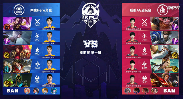 JRS直播网 3月13日2021KPL春季赛季前赛第一周第三日比赛,由成都AG超玩会对阵南京Hero久竞,以下是本场比赛快讯。