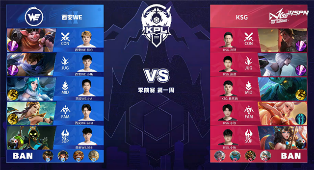 JRS直播网 3月13日2021KPL春季赛季前赛第一周第三日比赛,由西安WE对阵KSG,以下是本场比赛快讯。