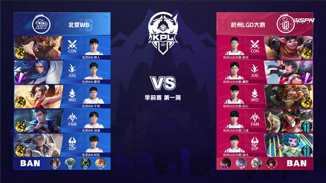 JRS直播网 3月12日2021KPL春季赛季前赛第一周第二日比赛,由北京WB对阵杭州LGD大鹅,以下是本场比赛快讯。