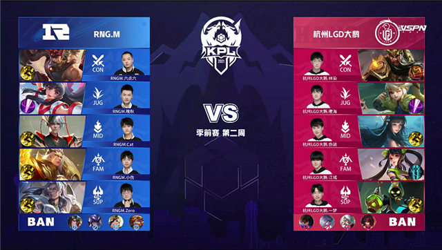 JRS直播网 3月20日2021KPL春季赛季前赛第二周第三日比赛,由RNG.M对阵杭州LGD大鹅,以下是本场比赛快讯。