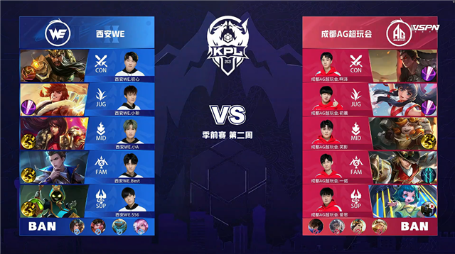 JRS直播网 3月18日2021KPL春季赛季前赛第二周第一日比赛,由成都AG超玩会对阵西安WE,以下是本场比赛快讯。