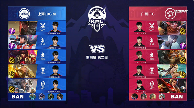 双方平稳开局,2分16秒中路团战上海EDG.M击杀澜拿到一血。2分41秒上海EDG.M拿下主宰。4分06秒上海EDG.M摧毁敌方下路外塔。4分22秒上海EDG.M拿下暴君。5分33秒双方中路1换1。6分58秒上海EDG.M拿下主宰。7分46秒中路团战广州TTG击杀盘古。7分59秒广州TTG上路击杀大乔。9分38秒广州TTG摧毁敌方下路外塔。10分43秒广州TTG抢到暗影暴君。11分38秒广州TTG摧毁敌方上路二塔。11分53秒广州TTG摧毁敌方中路二塔。12分02秒上海EDG.M上路击杀吕布。12分51秒上海EDG.M拿下暗影主宰。13分31秒上海EDG.M摧毁敌方上路二塔。15分31秒广州TTG拿下黑暗暴君,野区团战广州TTG打出1换3。17分14秒广州TTG拿下主宰。21分41秒野区团战广州TTG打出0换2。22分24秒高地团战广州TTG摧毁敌方三路高地塔,上海EDG.M击杀澜。23分16秒上海EDG.M拿下风暴龙王。24分49秒上海EDG.M摧毁敌方上路高地塔。26分36秒中路团战双方1换1。29分19秒下路团战广州TTG打出0换4。29分51秒广州TTG摧毁水晶拿下比赛。