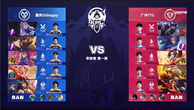 JRS直播网 3月12日2021KPL春季赛季前赛第一周第二日比赛,由重庆QGhappy对阵广州TTG,以下是本场比赛快讯。