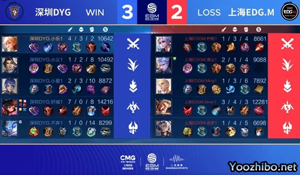 Game 5:蓝色方深圳DYG,红色方上海EDG.M