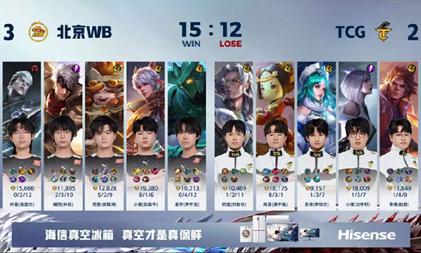 第四局,北京WB中期节奏把控得极为稳健,他们善于诱敌,骗出对方关键技能后再果断出手,成功扳平比分。星宇(李宇浩)的鲁班大师在团战中的关键拉人起到了决定性作用,本局MVP归属星宇。