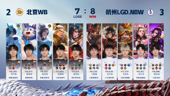 杭州 LGD.NBW 在这一局中决策果断,找机会能力强。他们抓住北京 WB 的漏洞,一举团灭对手,展现出强大的团队执行力。