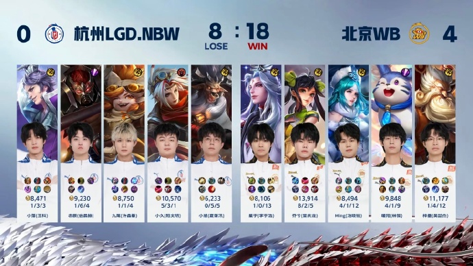 JRS直播网讯 2024KPL夏季赛季后赛败者组第一轮,LGD.NBW以0-4的比分惨败给北京WB,以下是具体的比赛情况: