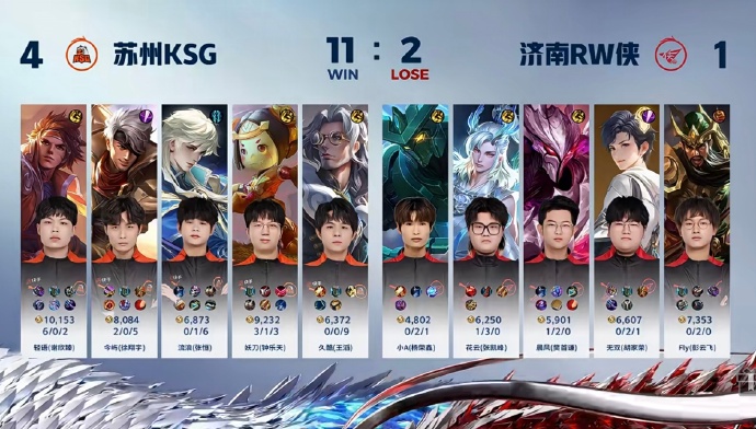 第四、五局,苏州KSG展现出较强的韧性,在拿到优势后结束比赛的能力较强,都是在十几分钟左右就轻松击败济南RW侠,拿到比赛胜利。