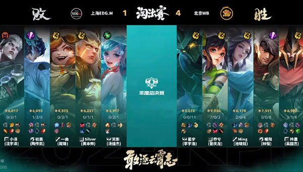 第五局,局势紧张到了极点。上海EDG.M在入侵野区时出现严重失误,局势瞬间炸裂。在红区团战中,后羿的箭精准控到了暖阳的夏侯惇,夏侯惇虽丝血却顽强扛到最后。梓墨的蒙恬抓住机会,豪取三杀,北京WB由此拿到优势。在最后一波团战中,孙尚香更是势不可挡,拿到四杀,北京WB成功赢下本场比赛的胜利,晋级胜者组半决赛!本局MVP依旧是北京WB梓墨(吴喆杰),他的蒙恬在关键局中发挥了至关重要的作用。